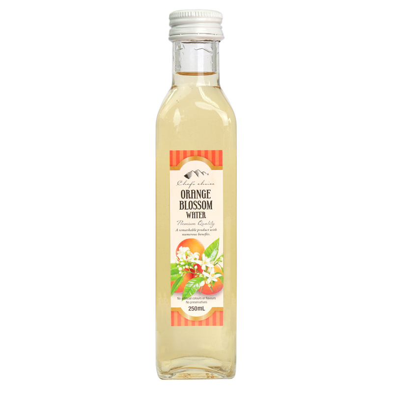Chef’s Choice Orange Blossom Water has a subtle, citrus-floral aroma that adds an orange zest to your desserts and dishes like couscous, lamb, hummus and falafel.